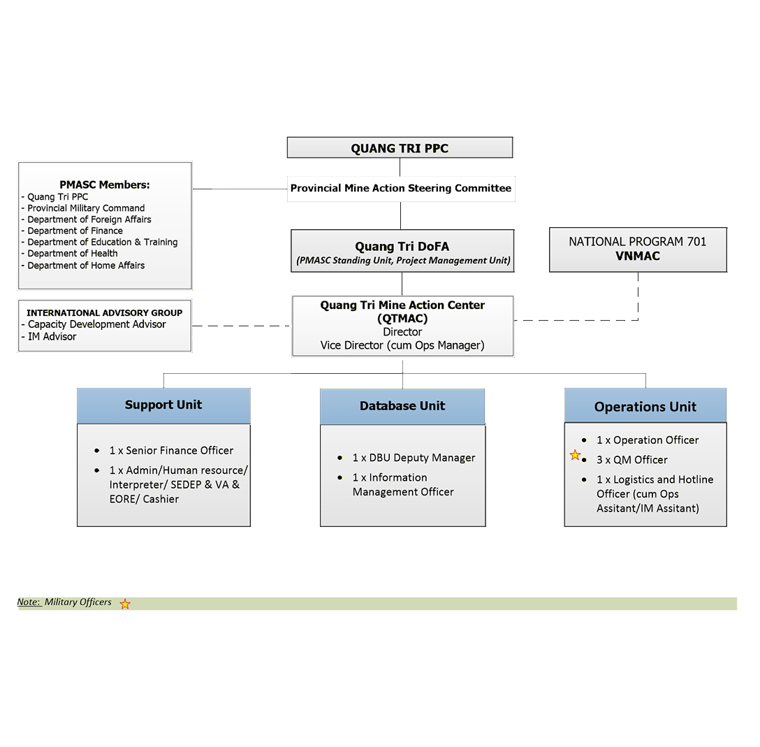 Managing The Provincial Information Management System for Mine Action of Quang Tri; effectively implementing mine action management including planning, quality management, prioritization, and coordination of post-war mine action activities in Quang Tri province.