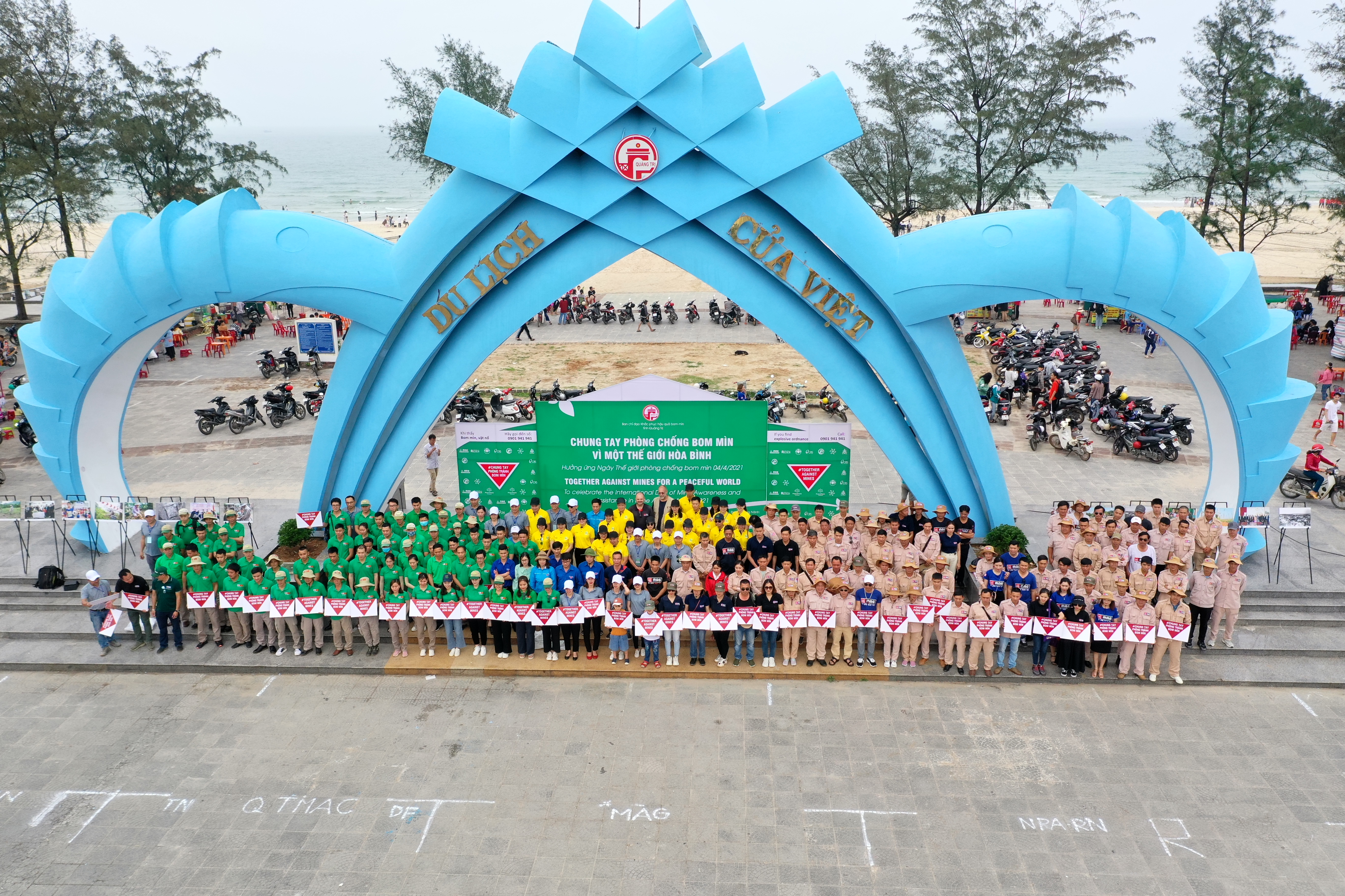 In response to the International Day for Mine Awareness and Assistant in Mine Action, on the afternoon of April 3, at Cua Viet beach (Gio Linh District, Quang Tri), the Department of Foreign Affairs, Quang Tri Province Mine Action Center coordinated with NGOs operating in Quang Tri area to organize an event with the theme "Joining hands to fight landmines for a peaceful world", and garbage collection at Cua Viet beach.