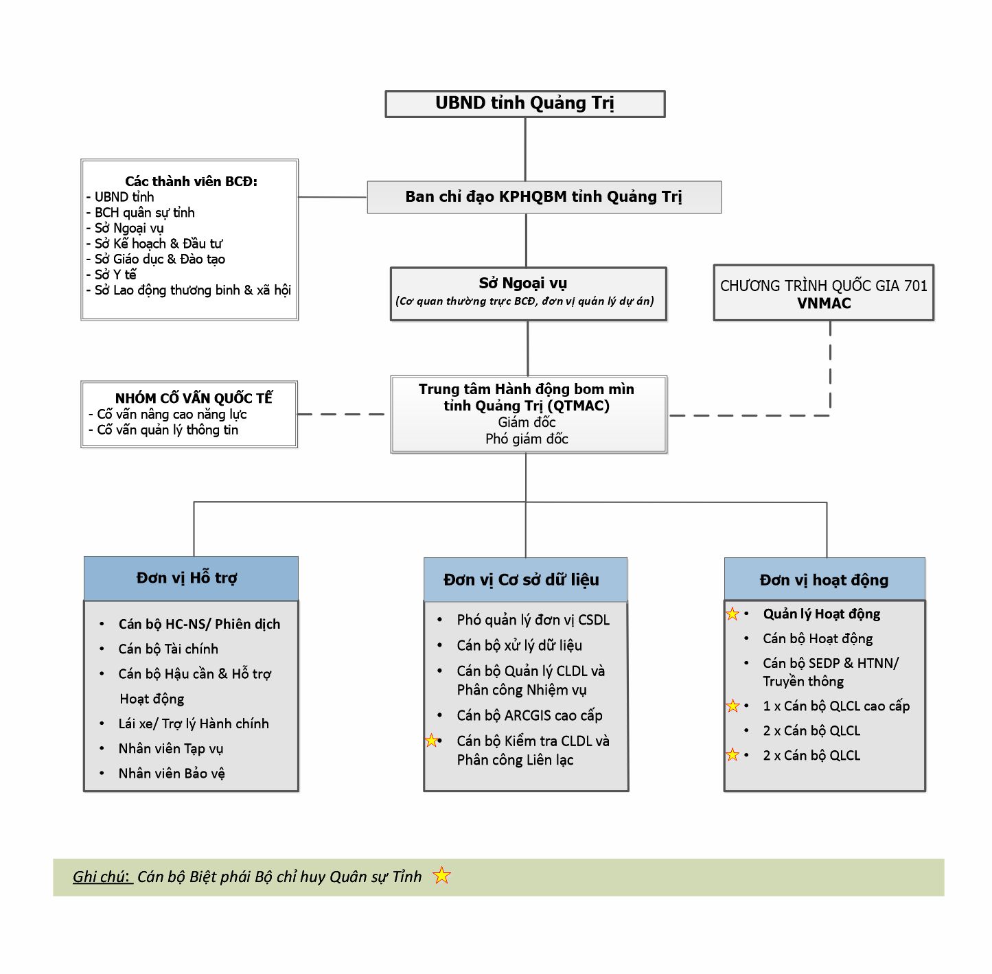 Trung tâm Hành động bom mìn tỉnh Quảng Trị (QTMAC) gồm: